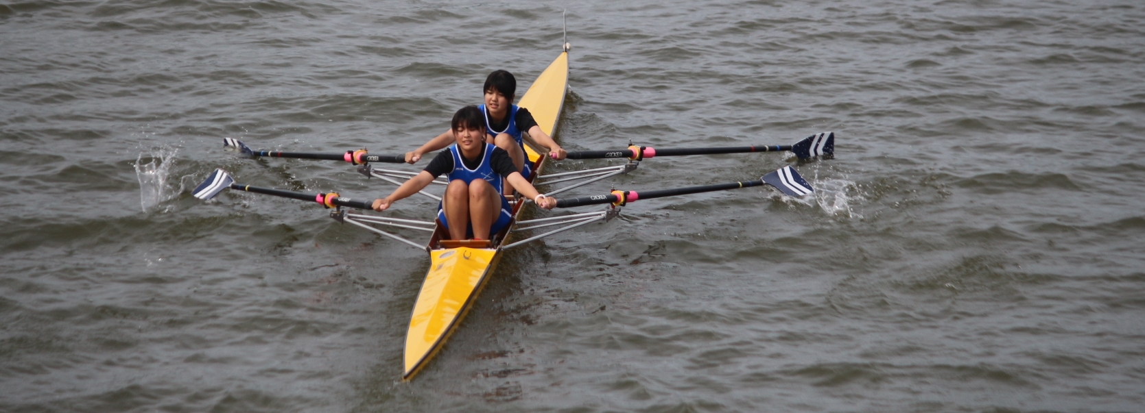 | No.230416 中国大会広島県予選 女子2艇出漕,2艇優勝! 2023-4-16,女子2×(3年生),女子4X+(舵手付きクォド,2年生)が出漕し,女子2×は宮工,廿日市高に勝って優勝,女子Qdは,独漕(中学生との同一レース)でしたが優勝し,中国大会にコマを進めました.顧問2名,支援スタッフ4名,OB1名が指導や,県ローイング協会要請のボートホルダー(ウォーターマン)従事などお手伝いしました.Well Row! |