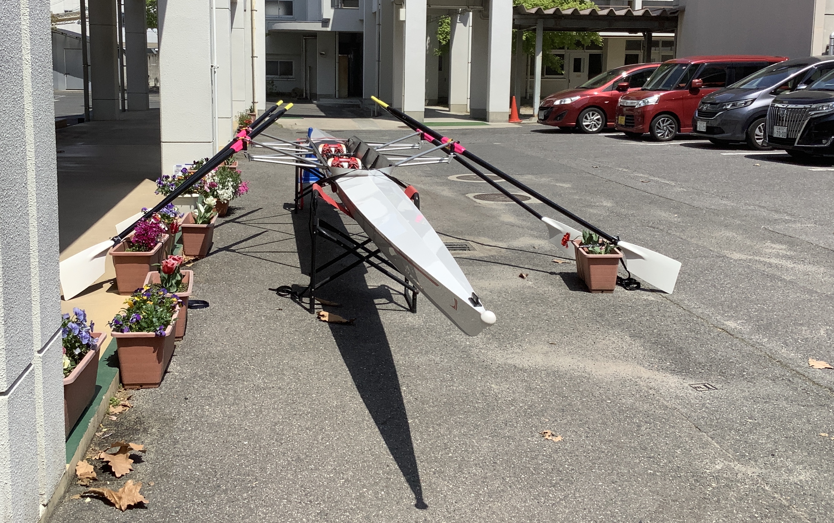 | No.230411 新入生部活紹介で新艇(女子用ダブルスカル)学校展示 2023-4-11,昨年度の久保財団スポーツ基金のご寄付と柏漕会有志の寄付による女子2×を,部活紹介にあわせて学校展示しました. ![]() |